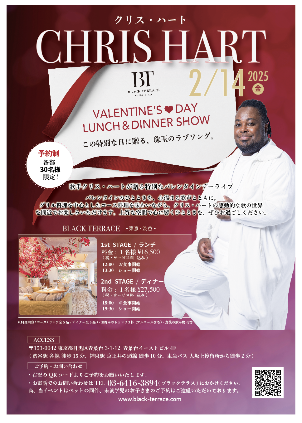 2月14日(金) 「クリス・ハート VALENTINE’S DAY LUNCH & DINNER SHOW」出演!